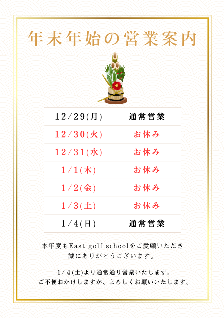 日頃よりEast golf schoolをご愛顧いただきまして 誠にありがとうございます。